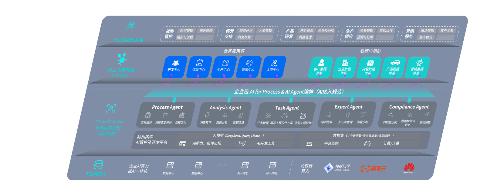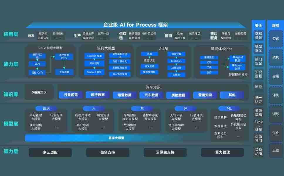 端到端的一站式AI工作空间深度融合了从企业战略规划到日常经营的全流程业务板块,,,,定向解决车企内部领域多、、部门多、、链条长、、、场景碎片化等难题,,,,支持车企快速构建以AI为核心的生产力写作体系,,,,实现任务执行与AI能力的无缝集成与交互